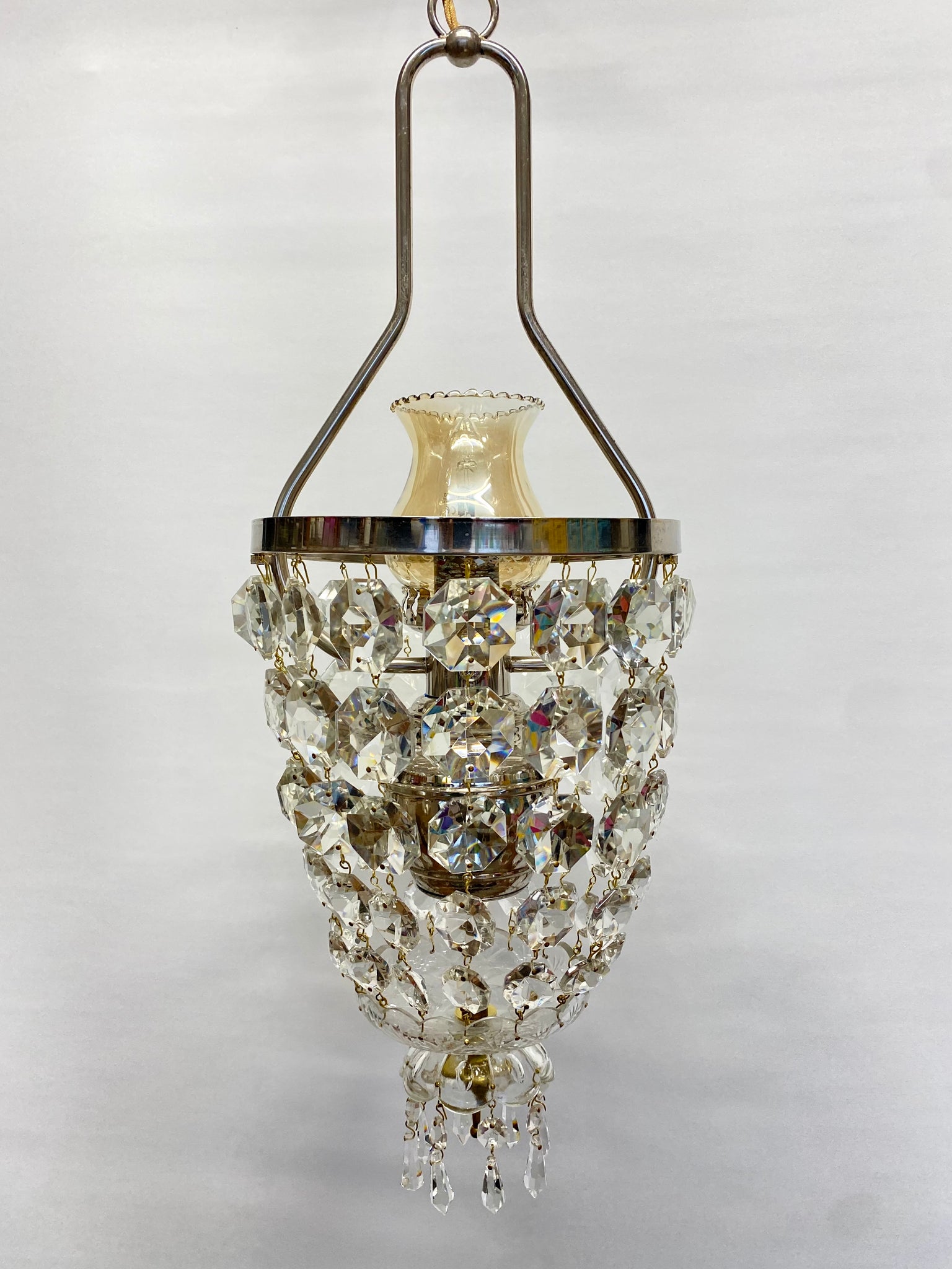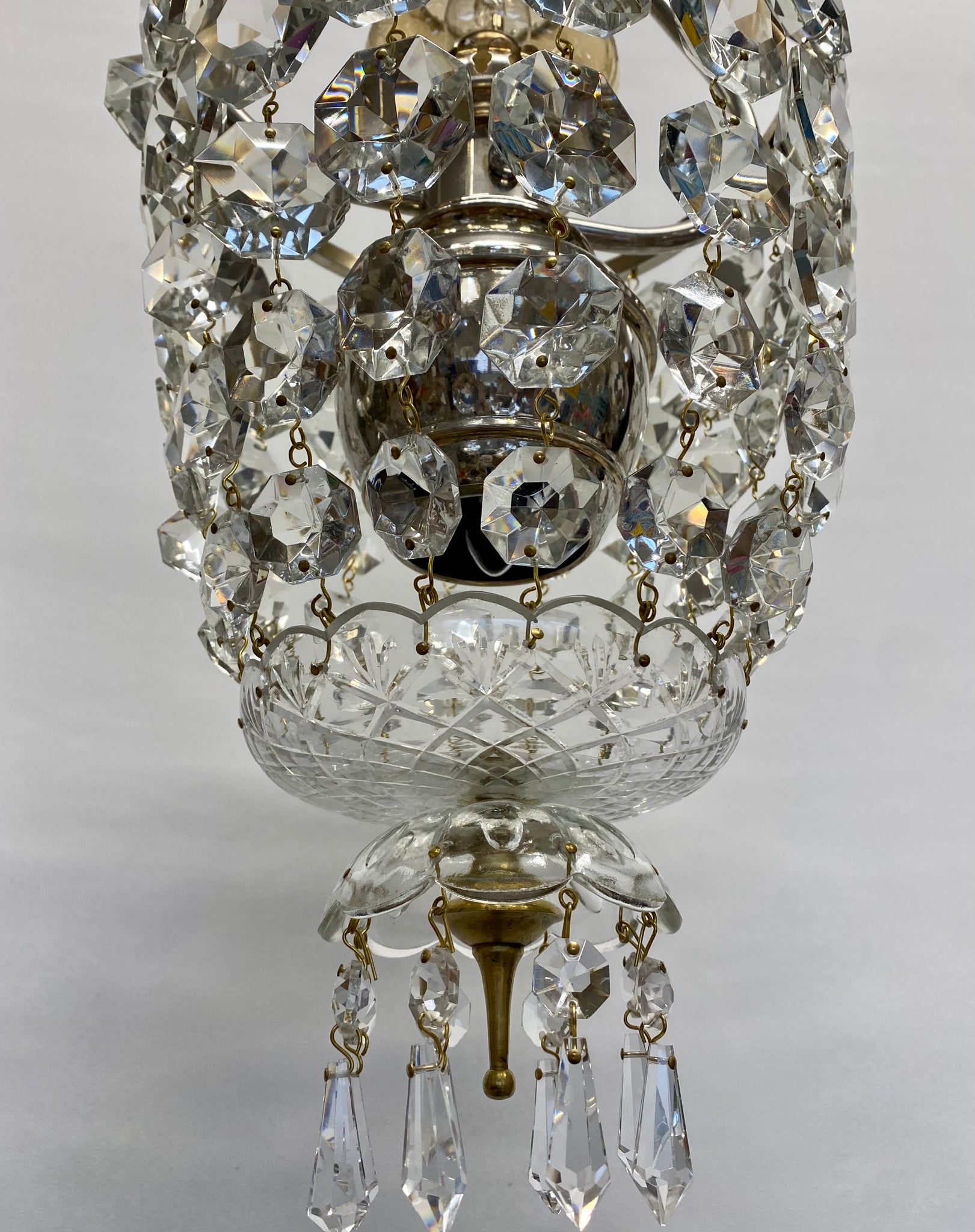 A stunning vintage bag chandelier with an abundance of large octagon crystal drops.