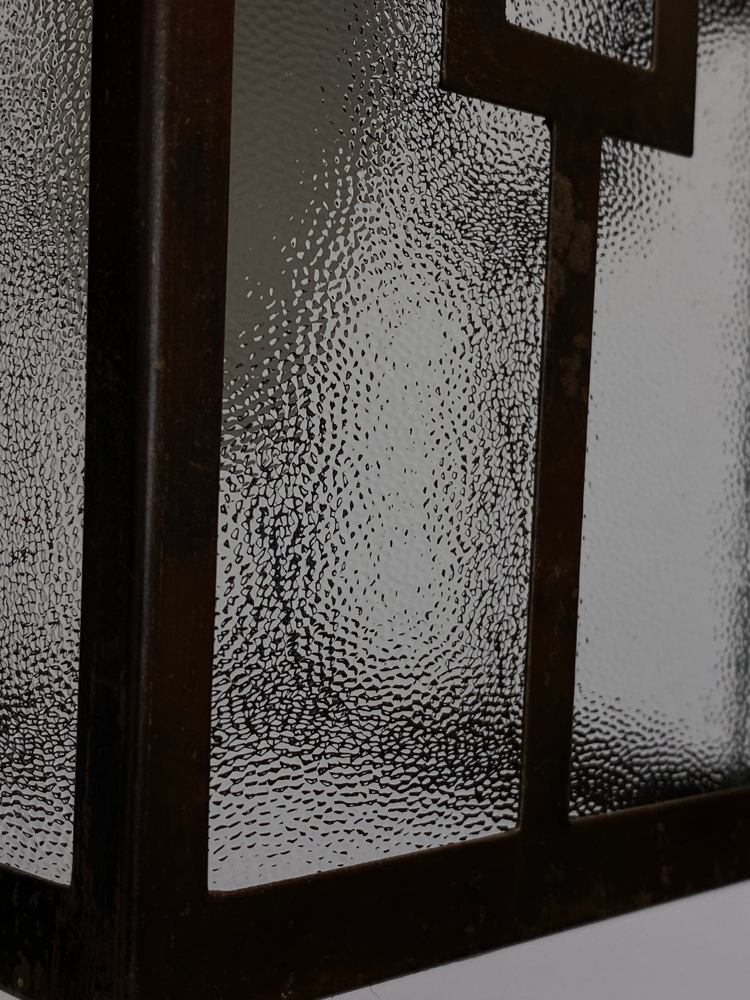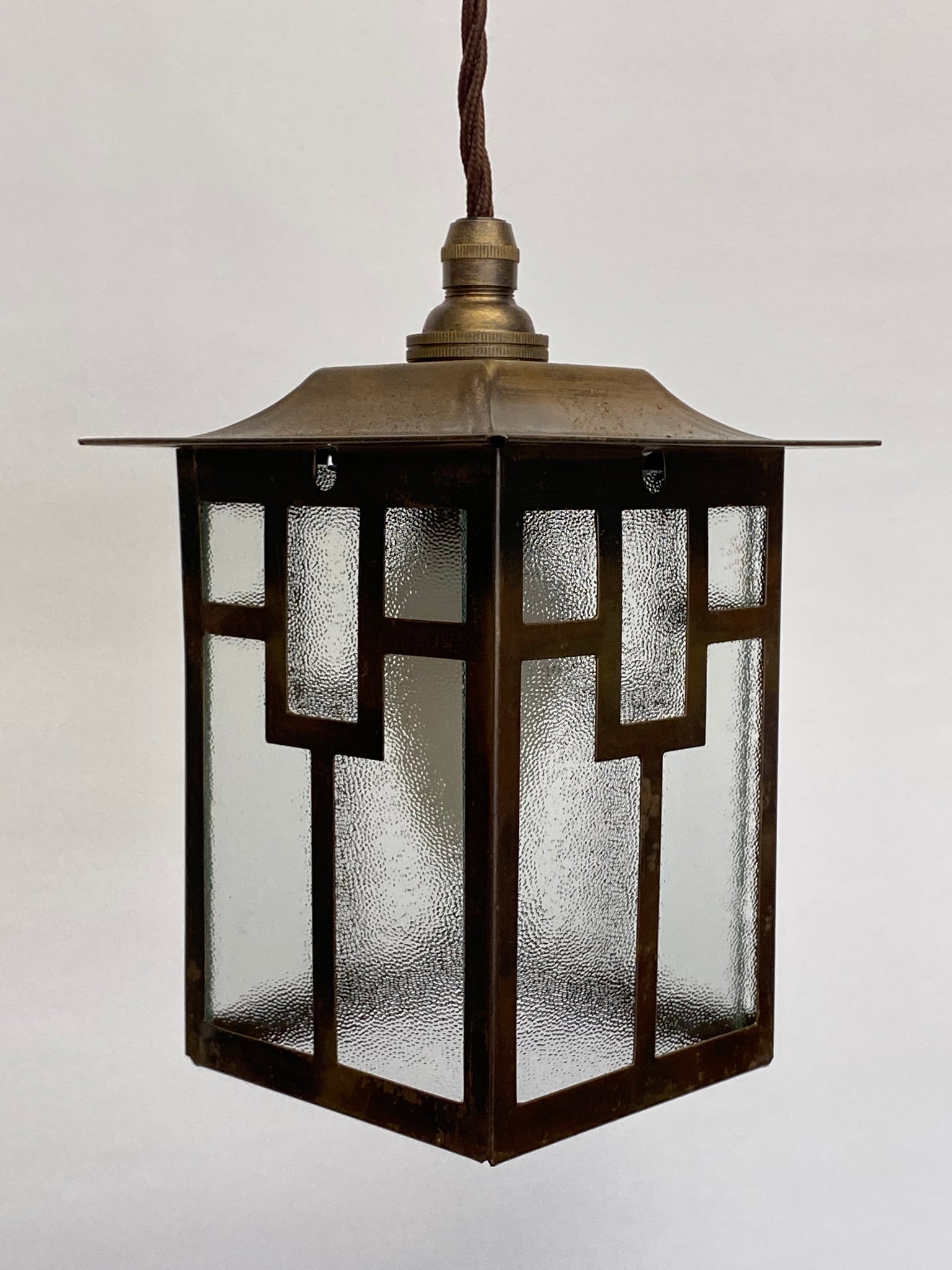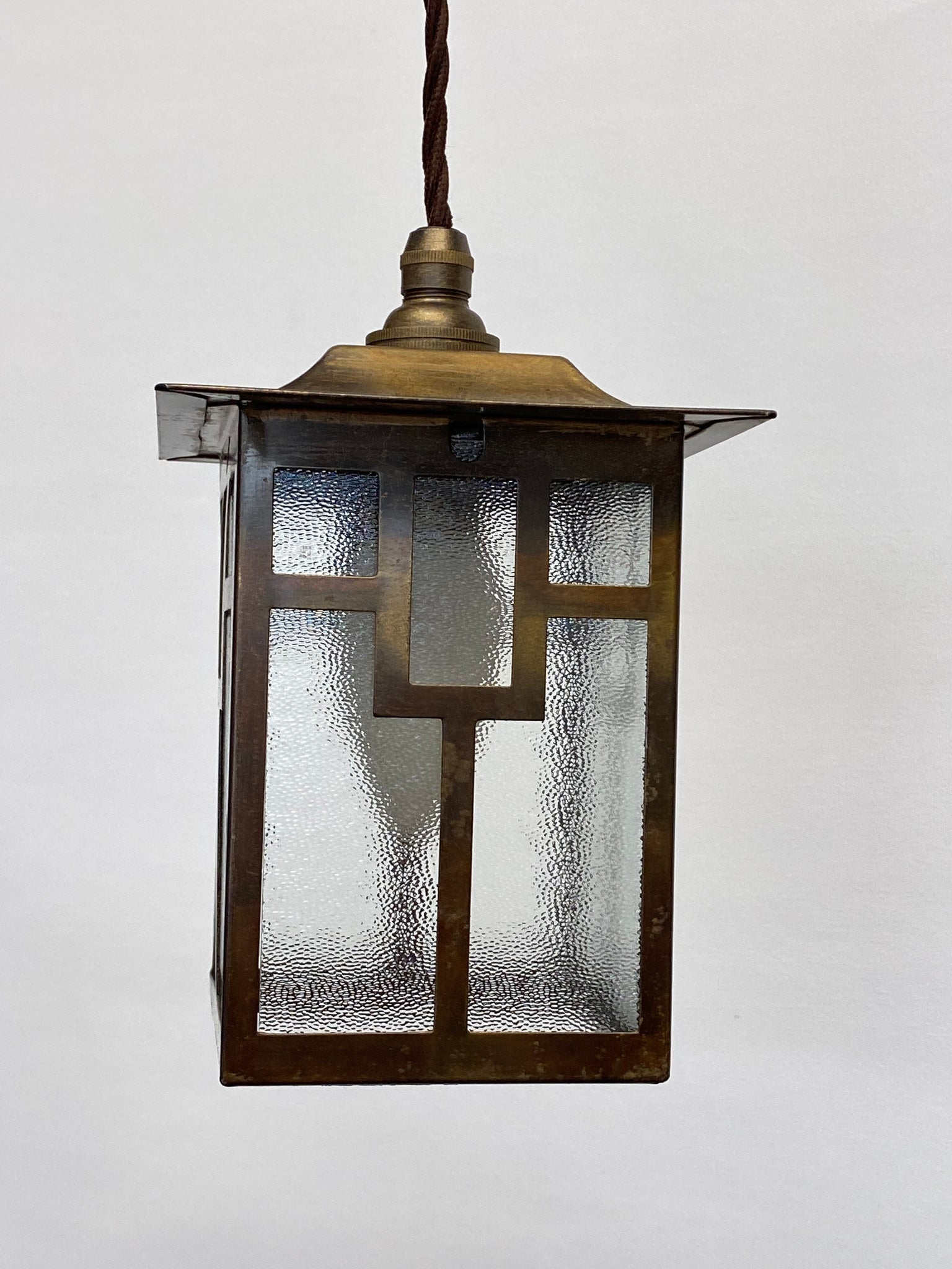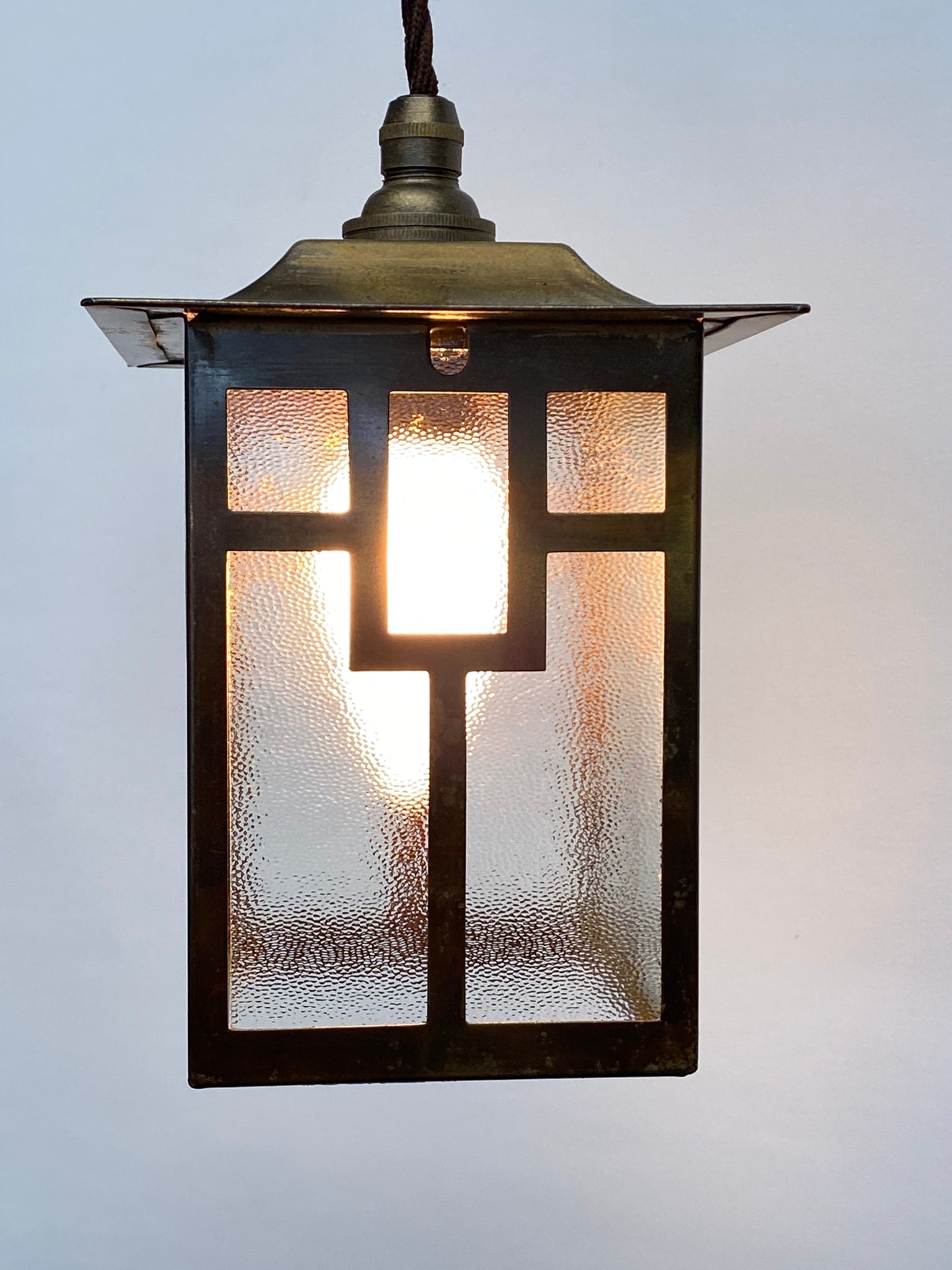 Here we have a Vintage oriental Japanese style pendant light with brass frame and textured glass. Perfect for entrance porch or mood lighting.